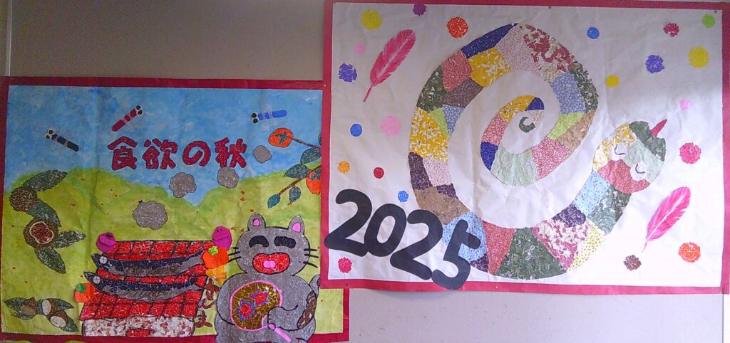こちらは利用者の方々が作られた秋の壁面になります。🍂