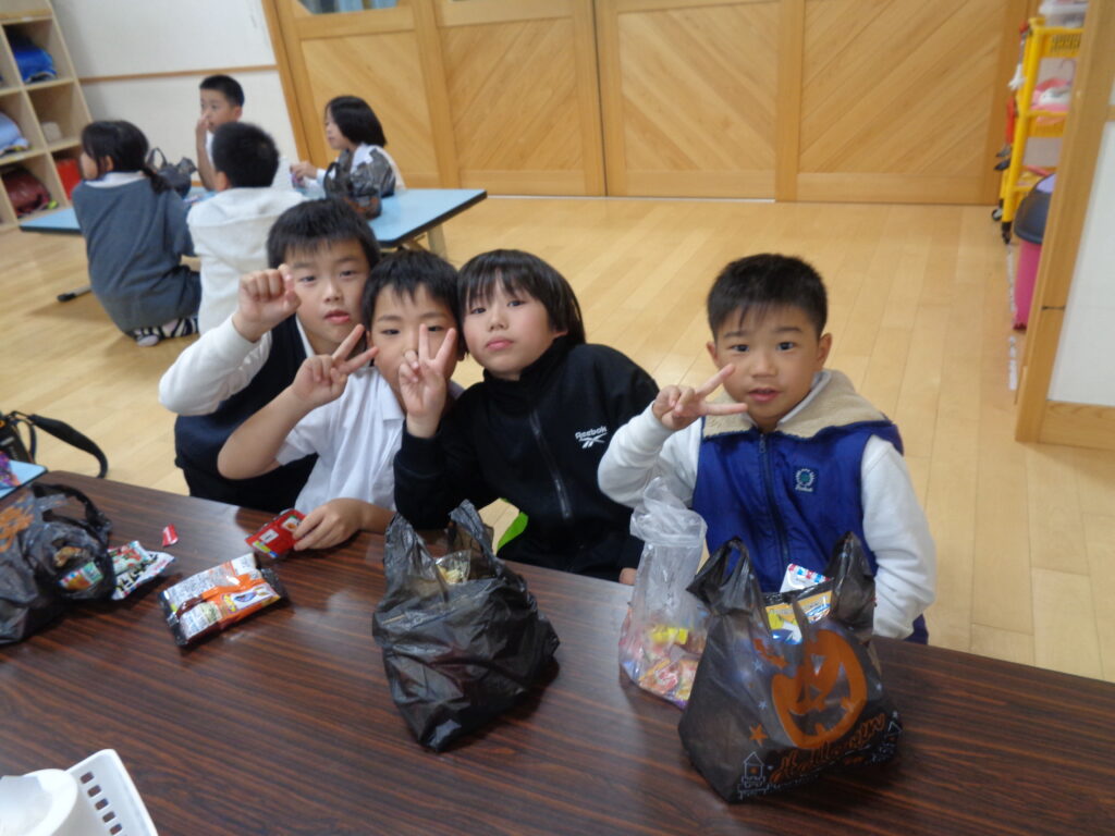 今年もハロウィンパーティーを開催しました!ゲーム大会をした後は、おやつを食べました。いつもより多いおやつにみんな喜んでいました♪
