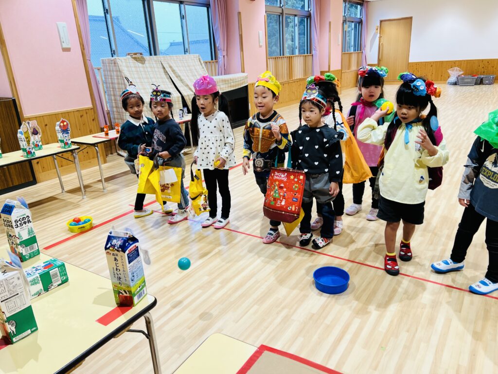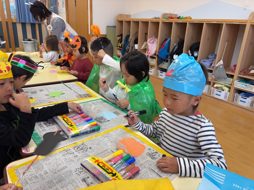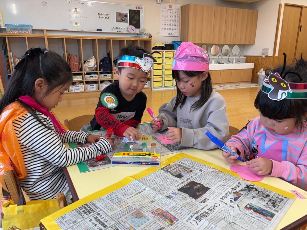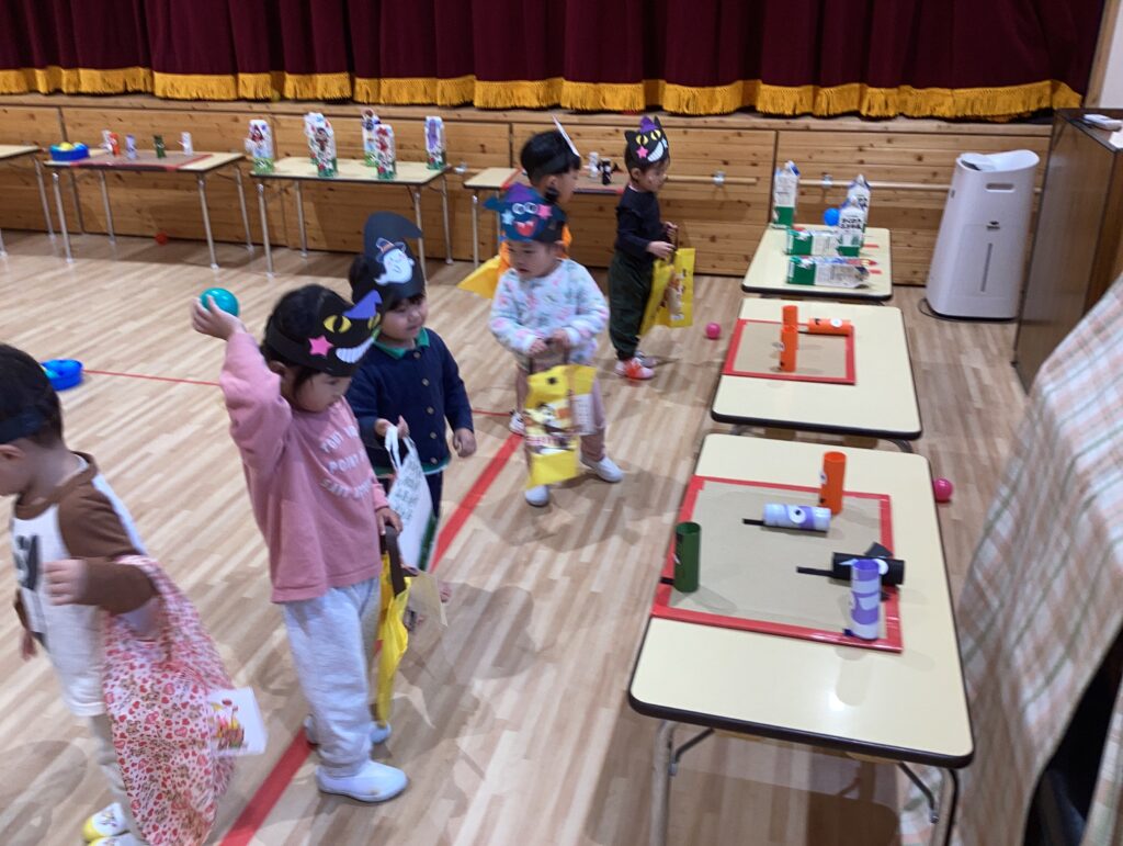 的あてをしたり、新聞迷路をしたり、ドーナツにシール貼りをしたり、コーナー遊びが沢山で、子どもたちも大喜びでした🎃