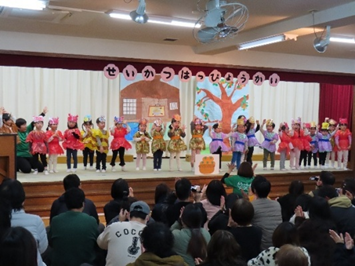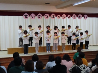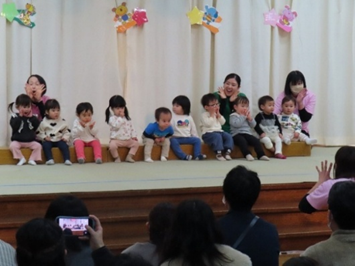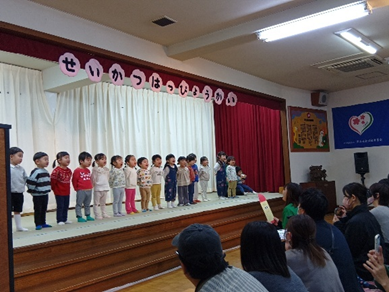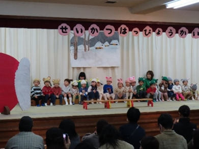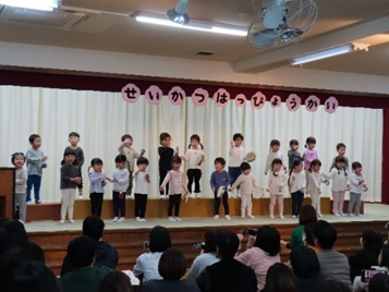 インフルエンザなどの流行が心配される中、無事に生活発表会を開催することができました。日々、大好きな担任の先生と一緒に過ごしてきた自然な姿が、しっかりと子どもたちの表情に現れ、一人ひとりが輝いた1日になりました。
