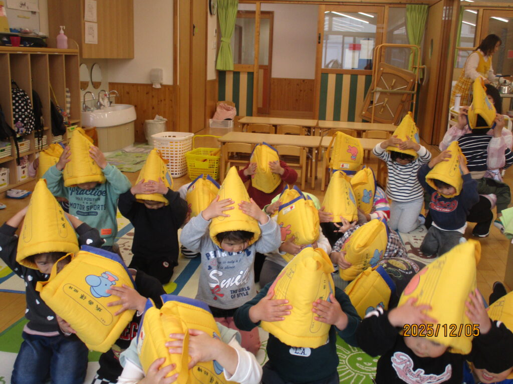 いつ起こるか分からないのが災害です。今回の訓練からでた反省や課題を職員間で話し合い、子ども達が安全に避難できるよう今後も保護者のご協力を頂きながら訓練を行っていきたいと思います。