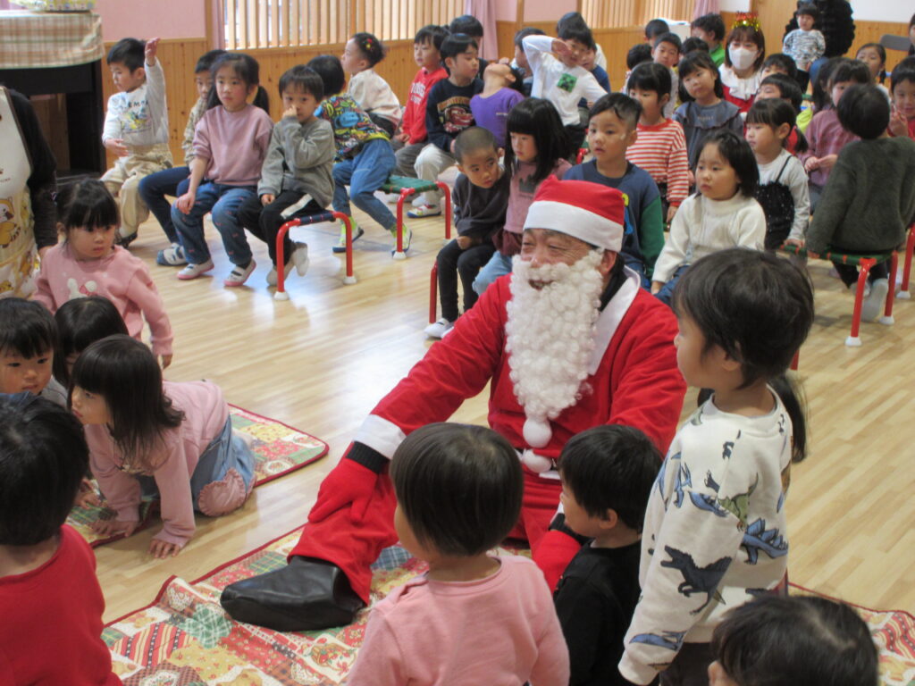 サンタさんも来てくれました!子どもたちに大人気のサンタさん。子どもたちからの質問にも丁寧に答えてくれましたよ。