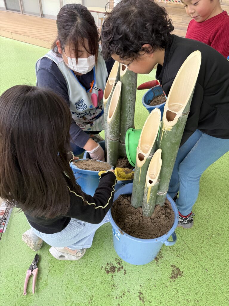 午後から、保育者と一緒に門松づくりもしてくれました。