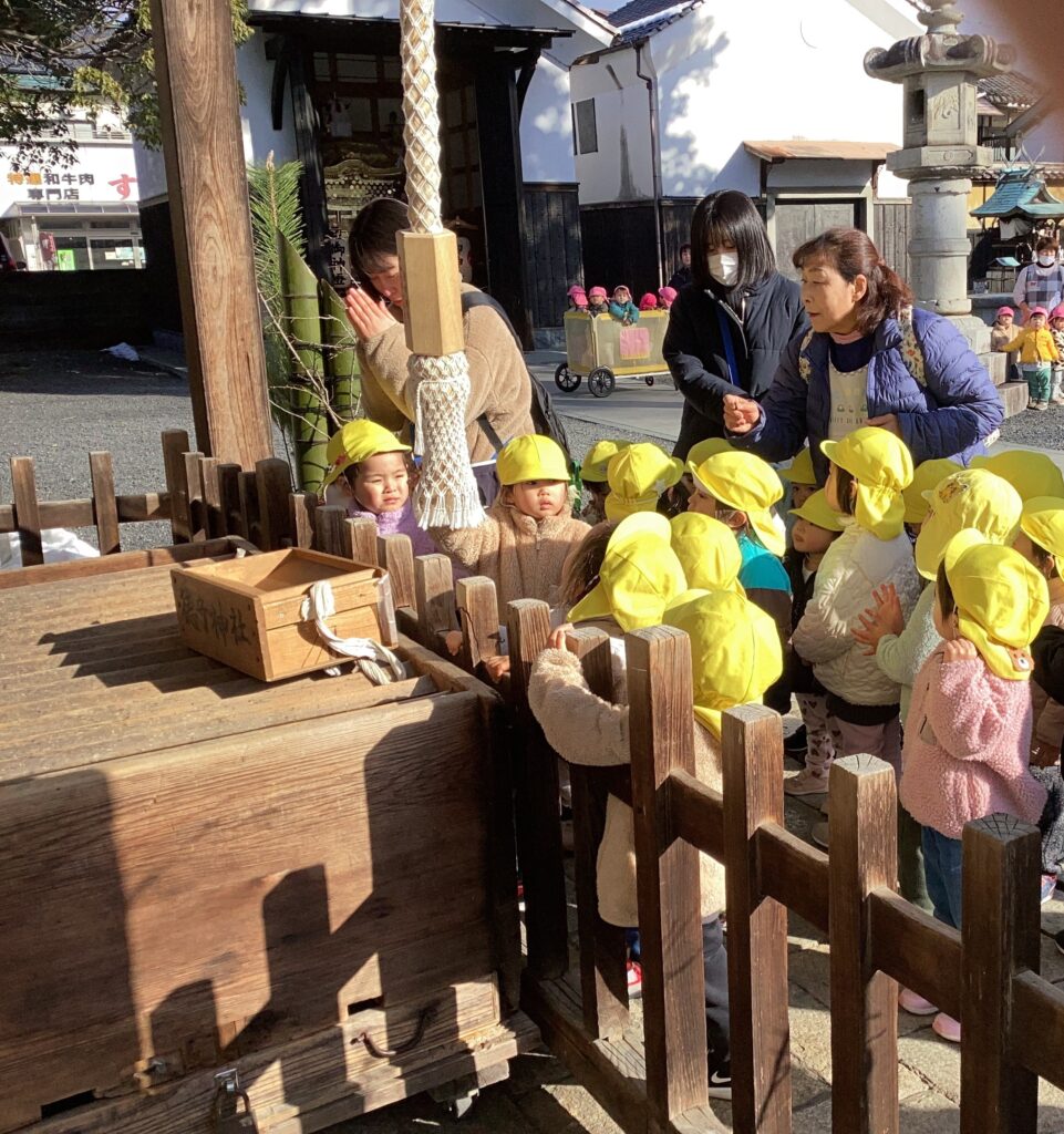 1/6(火)に、徳守神社まで初詣に行って来ました。配ってもらったお賽銭をぎゅっと握りしめ、「元気に大きくなりますように」とお願いをしました。子どもたちのお参りする姿がとても可愛く、微笑ましい初詣となりました。
