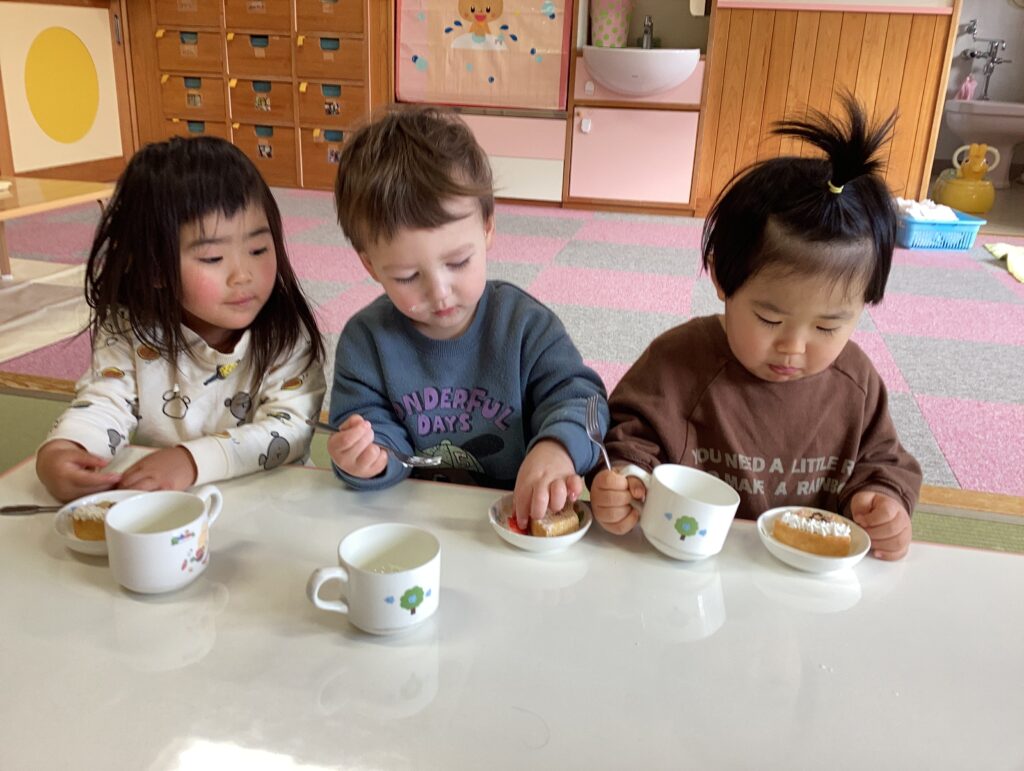 おやつはかわいい鬼のケーキでした。