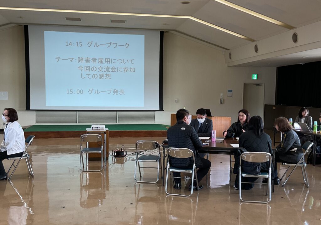 令和8年2月25日(水)に津山市総合福祉会館を会場に、関係企業交流会を実施しました。本交流会は、障がい者の雇用をより一層促進するために、障がいのある方の就労機会の拡充と、事業所等では働く方を地域で支えるために必要な社会資源や地域支援のネットワークの構築を目的としています。今回は、株式会社ホスネット・ジャパン 津山センターより「わが社の取り組み~中高年齢者への関わりについて~」講演をいただきました。その後、グループに分かれて企業間での障害者雇用の取り組みや受け入れなど情報共有の機会としました。参加いただいた事業所の皆様ありがとうございました。