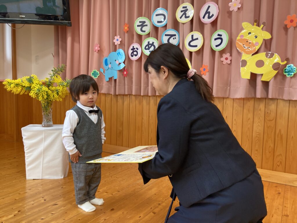 3月25日(水)ぞう組・きりん組さんの証書渡しを行いました。