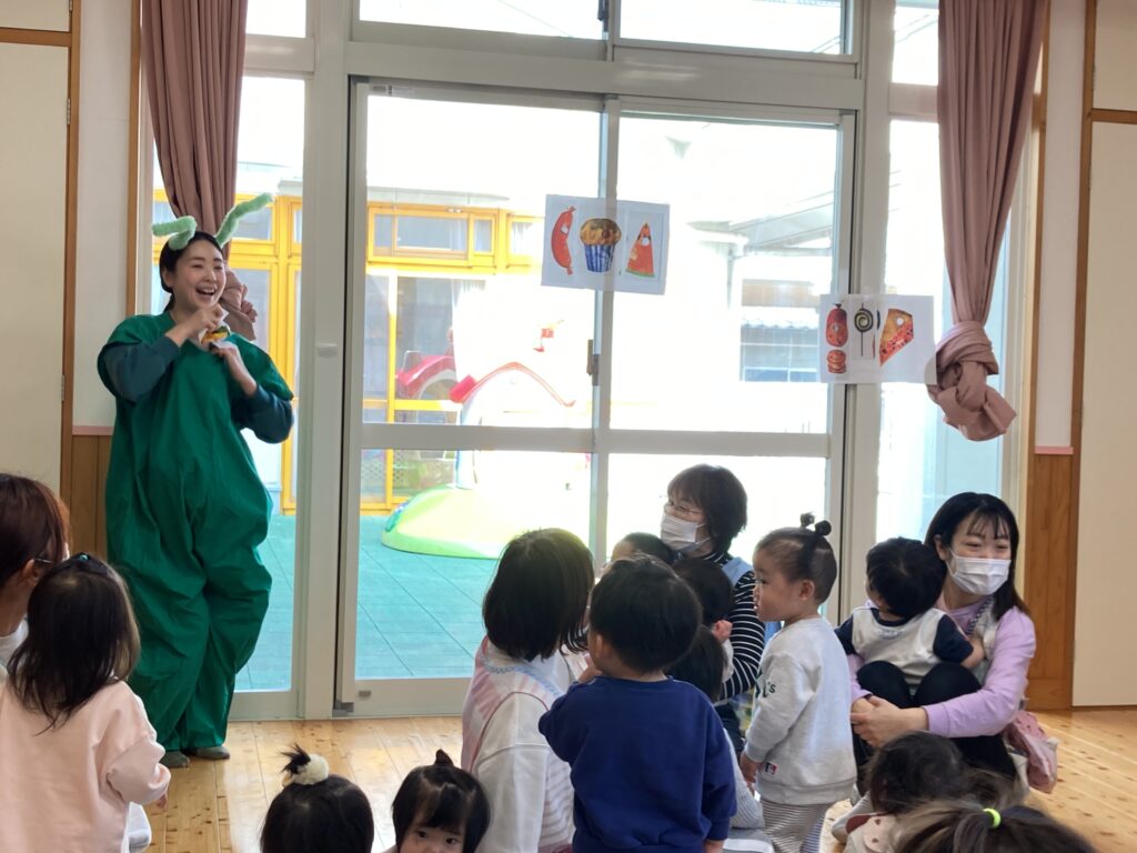 職員による劇「はらぺこあおむし」では、子どもたちの笑顔や笑い声がたくさん見られました。