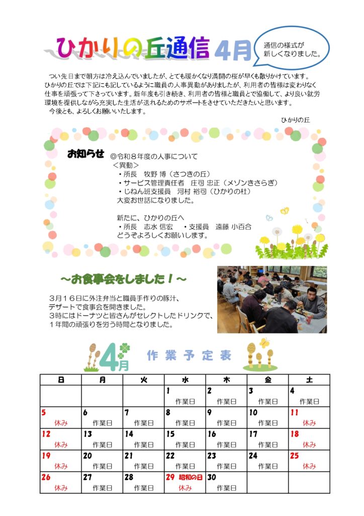 ひかりの丘 通信4月