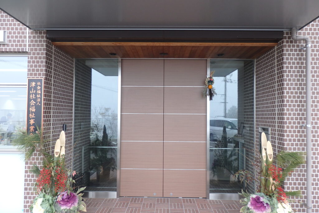 法人本部の玄関には法人内事業所の「ひかりの丘」で作成してもらった門松を飾っています。門松はお正月に年神様を招き入れるための“目印”とされています。年神様は福をもたらす神様であり、その年の幸福や恵みをもたらすと信じられています。